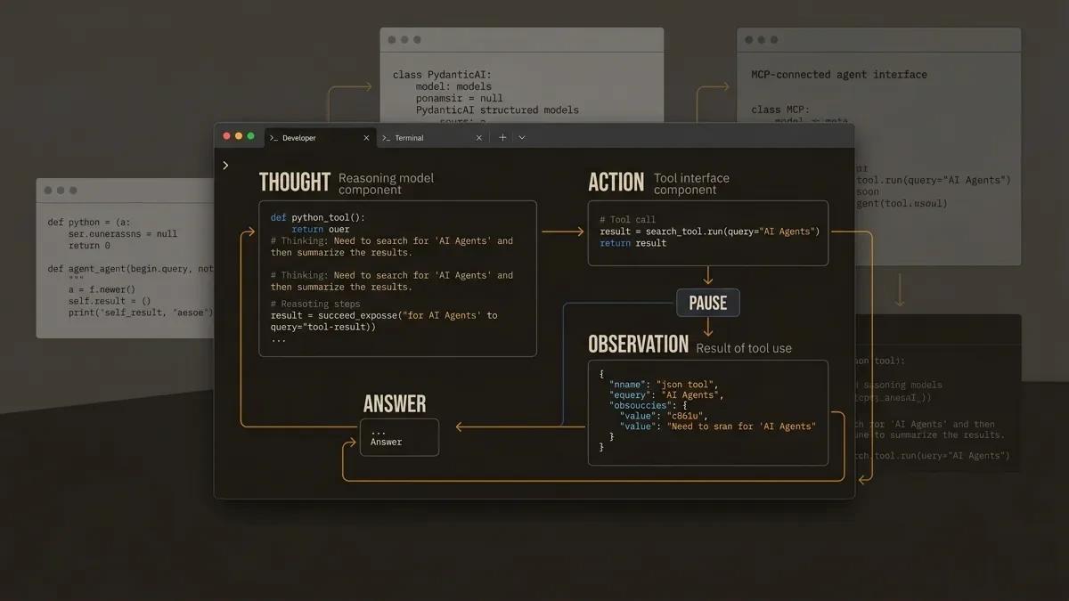 The formula is straightforward: LLM + Tools + a Loop. The language model serves as the brain, the tools let it interact with the outside world, and the loop ties them together so the model can reason, act, observe, and repeat.